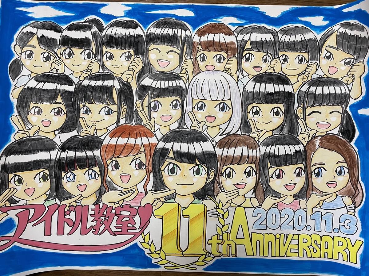 今回は「僕がアイドル教室メンバーの絵を描く時のポイント」について語っていこうと思います。横断幕を描くに至った経緯と、横断幕に対する想いなどと共に色々と書いていきます。長文になる予感…。そして、細かく写真張ったりとか思ったけど、やり方忘れたから11周年の横断幕だけ張っておく←